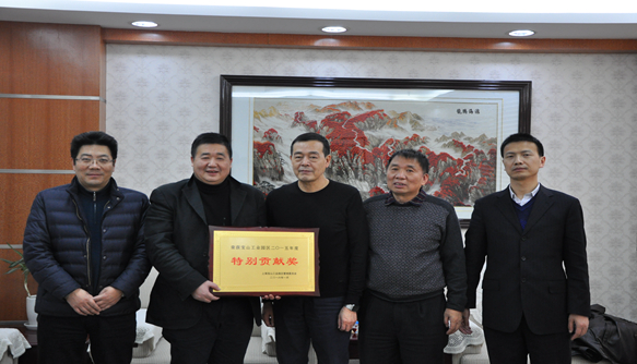(2016年2月3日,上海)2016年2月1日,海隆作為上海市寶山工業(yè)園區(qū)稅收的最大貢獻(xiàn)者,再次榮獲了上海市寶山工業(yè)園區(qū)2015年度“特別貢獻(xiàn)獎”。上海市寶山工業(yè)園區(qū)黨工委書記楊寶康(左三)為海隆授獎,集團(tuán)執(zhí)行總裁汪濤代表集團(tuán)(左二)接受此殊榮。